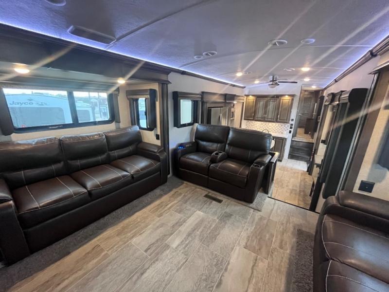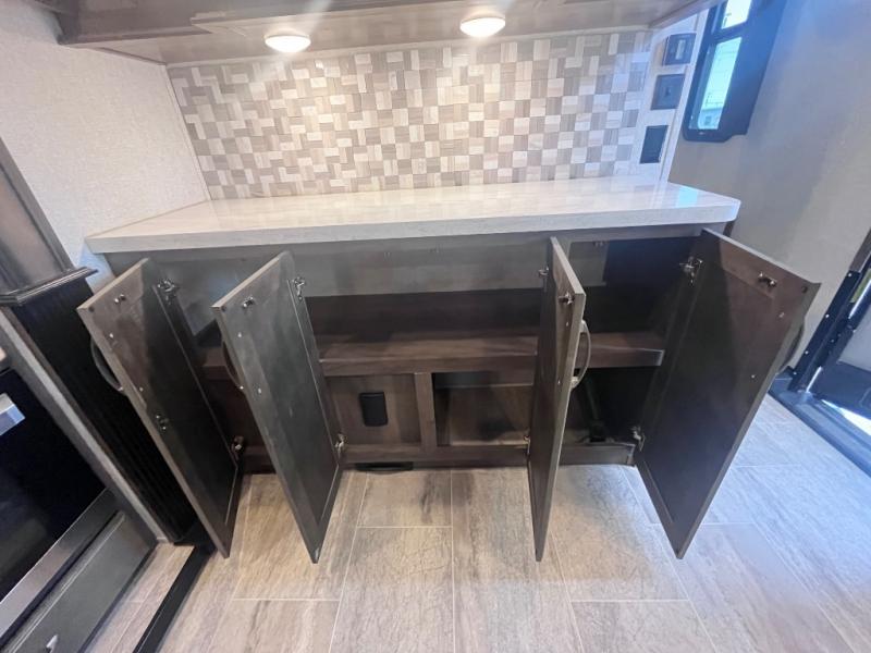 Enjoy the space provided by 5 slide outs in this Keystone Montana fifth wheel. With dual slide outs in the living area, and two slides in the kitchen area you will find the two rooms spacious and inviting. Model 3791RD offers a rear living and entertaining room with plenty of seating including dual hide-a-bed sofas and power theatre seats. Everyone can gather around the HDTV and fireplace to watch movies or the big game. The kitchen offers a separate space to make and eat meals. You will find a kitchen island, an 18 cu. ft. residential refrigerator, convection microwave, a hutch, and a pantry, plus more. You will find plenty of storage throughout as well as outside. Outdoors there is an entertainment center with 32" HDTV, and a slide out storage tray on the rear, plus much more!