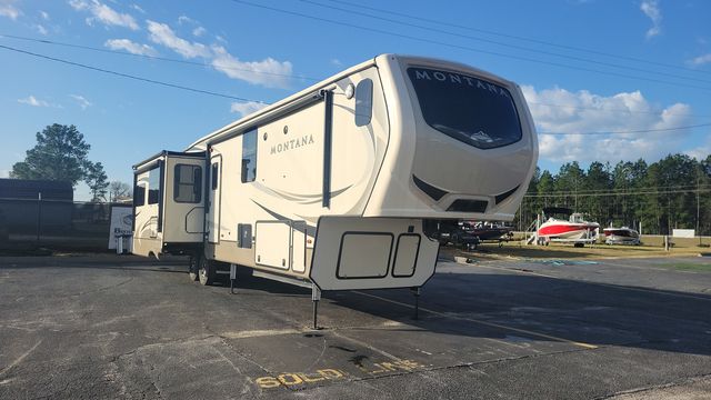 When packing for your next trip in a Keystone Montana luxury fifth wheel you will appreciate the enormous drop frame pass-through storage compartment, MORyde "Step Above" entry steps with strut, and flush mounted LED interior lights to name a few features. Inside you will find an iRelax high density mattress for a good night's sleep, plus a Furrion RV Chef collection oven with auto-ignite and a convection/microwave oven for making your favorite meals. It's time to find the luxury fifth wheel you can enjoy for years to come, choose a Montana by Keystone today!