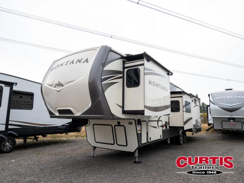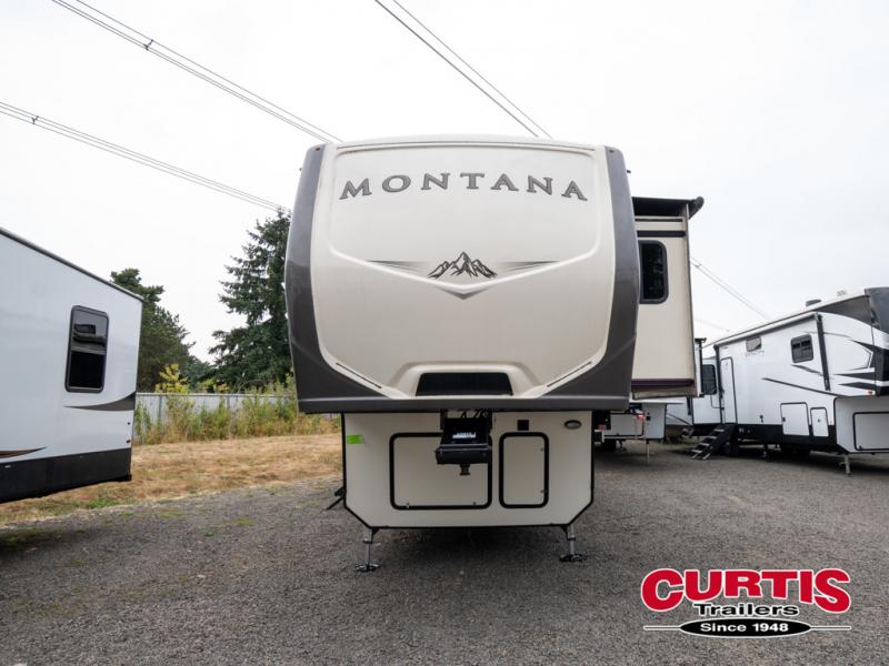 When packing for your next trip in a Keystone Montana luxury fifth wheel you will appreciate the enormous drop frame pass-through storage compartment, MORyde "Step Above" entry steps with strut, and flush mounted LED interior lights to name a few features. Inside you will find an iRelax high density mattress for a good night's sleep, plus a Furrion RV Chef collection oven with auto-ignite and a convection/microwave oven for making your favorite meals. It's time to find the luxury fifth wheel you can enjoy for years to come, choose a Montana by Keystone today!