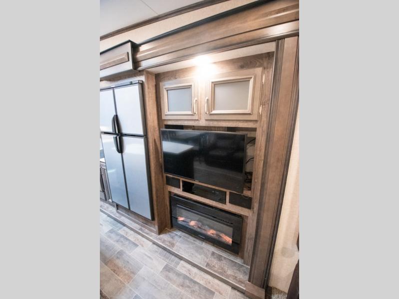 Step into this Montana High Country fifth wheel by Keystone and see how convenient your time away from home will be. Model 305RL allows you to move around freely with the triple slides. The main living and kitchen area offers a center island for extra prep space, a coffee station, a 12 cu. ft. RV refrigerator, and a HD LED TV above an electric fireplace controlled by a remote to keep you warm all year long. The front bedroom is a retreat away from it all with a shiplap design headboard for the queen bed and a 32" HD LED TV, plus there is plenty of storage for any trip. You might even like to hitch up your own bike rack to the 2" receiver hitch on the rear, plus more!