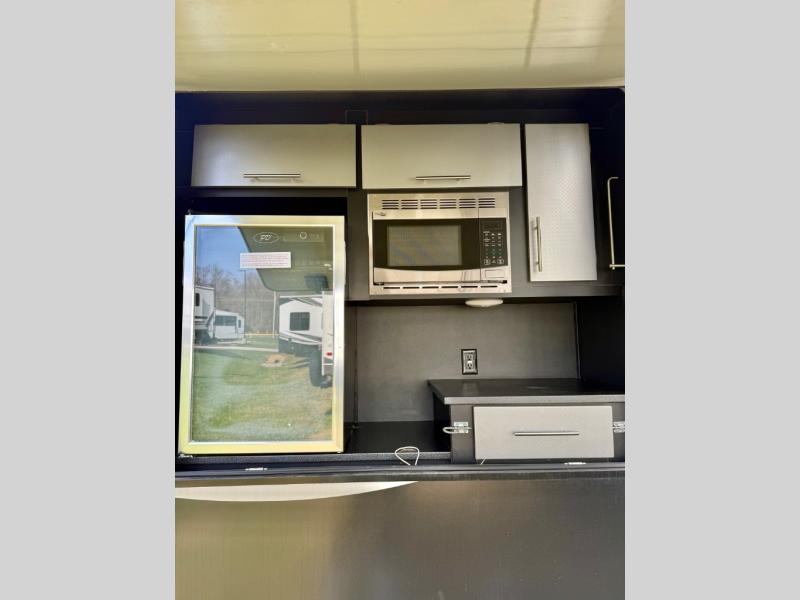 Before you enter check out the rear outdoor kitchen near the second entry door. Here the chef in the family will enjoy some added conveniences with a refrigerator, counter space and storage, microwave, and a pull-out two burner cook-top.