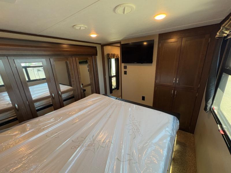The Keystone Montana High Country 381TH toy hauler fifth wheel combines luxury, functionality, and rugged design for off-road adventures. With a spacious garage, front living area, residential kitchen, and multiple slides, it provides comfort and convenience for the whole family. Enjoy panoramic views, premium materials, and high-end features that make this fifth wheel perfect for long weekends or extended adventures.