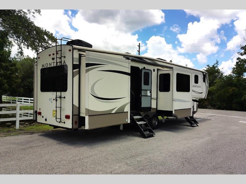 When packing for your next trip in a Keystone Montana luxury fifth wheel you will appreciate the enormous drop frame pass-through storage compartment, MORyde "Step Above" entry steps with strut, and flush mounted LED interior lights to name a few features. Inside you will find an iRelax high density mattress for a good night's sleep, plus a Furrion RV Chef collection oven with auto-ignite and a convection/microwave oven for making your favorite meals. It's time to find the luxury fifth wheel you can enjoy for years to come, choose a Montana by Keystone today!