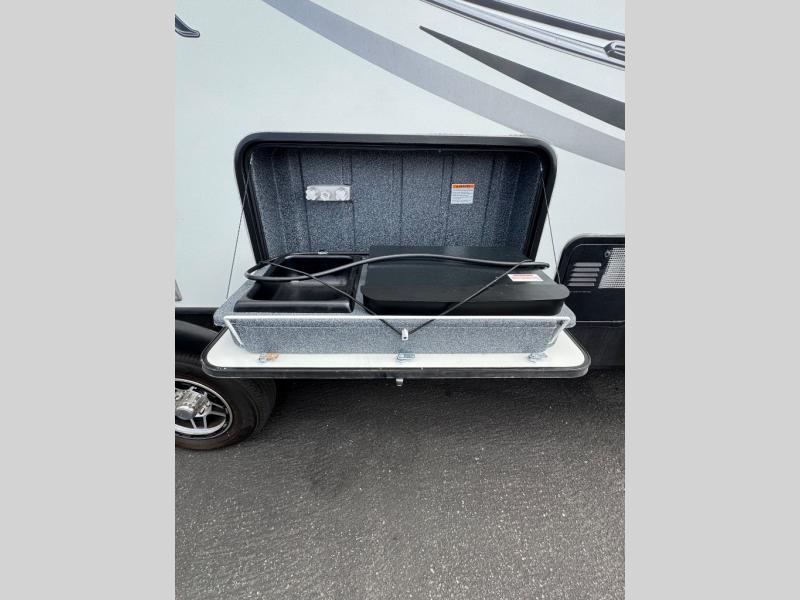 Don't forget about the outside camp kitchen featuring a single sink and two burner cooktop, and the pass-through compartment for your outdoor gear, plus there is more to see!