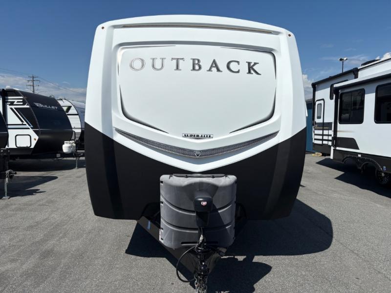 Step inside this Outback Super Lite 325BH by Keystone RV which features a bunkhouse, front bedroom, outside kitchen, and triple slides.