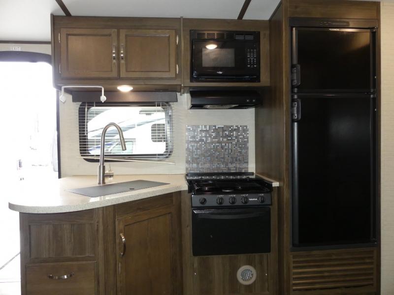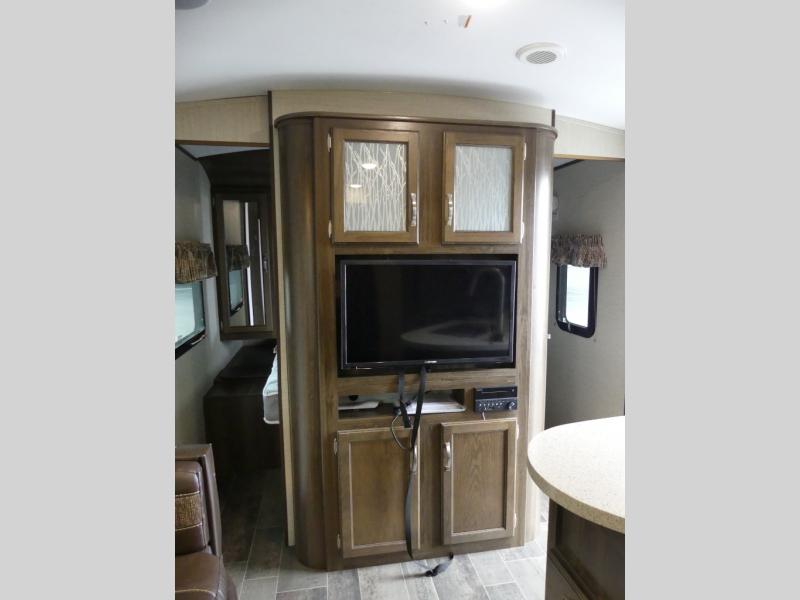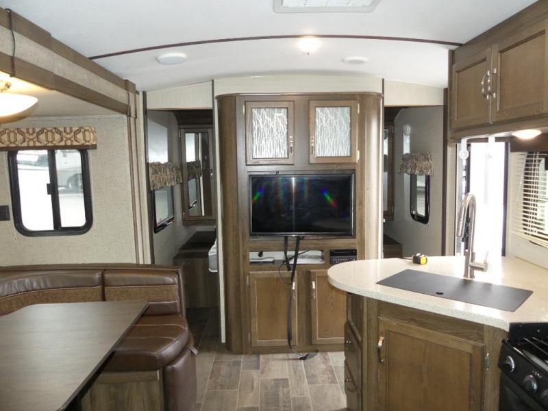 Because of the innovative and modern approach that Keystone has taken with the construction of the Premier travel trailer, you receive a unit that is both functional and comfortable. The residential in-floor heating system gives the stain-resistant Beauflor linoleum flooring a warm and cozy touch, and the 6' 11" vaulted ceilings keep the entire trailer open and inviting to all guests. If you enjoy hosting late-night get togethers with those guests, then the outdoor electric awning with LED lights is a perfect spot for you and your friends to get together as you listen to your favorite music on the exterior speakers.