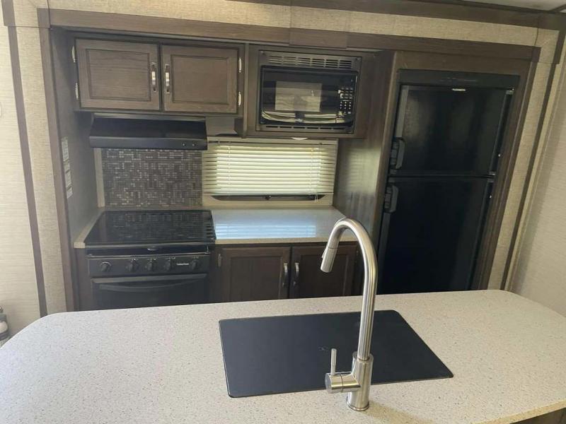 Because of the innovative and modern approach that Keystone has taken with the construction of the Premier travel trailer, you receive a unit that is both functional and comfortable. The residential in-floor heating system gives the stain-resistant Beauflor linoleum flooring a warm and cozy touch, and the 6' 11" vaulted ceilings keep the entire trailer open and inviting to all guests. If you enjoy hosting late-night get togethers with those guests, then the outdoor electric awning with LED lights is a perfect spot for you and your friends to get together as you listen to your favorite music on the exterior speakers.