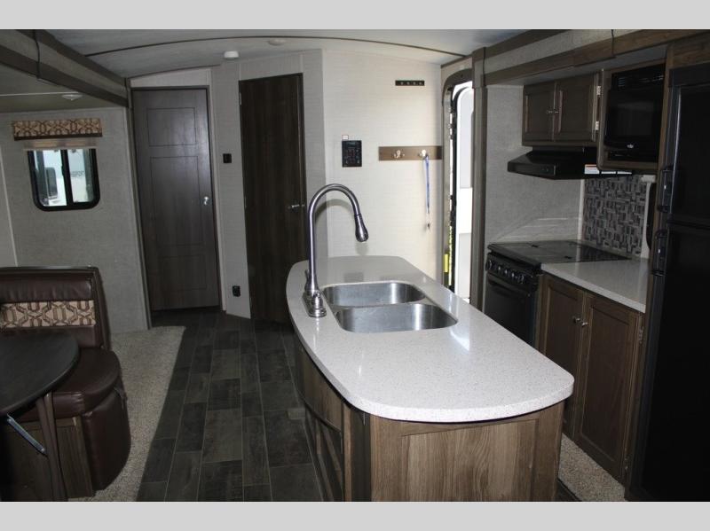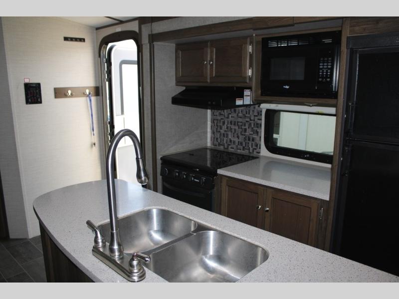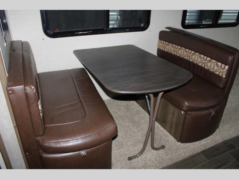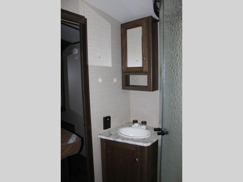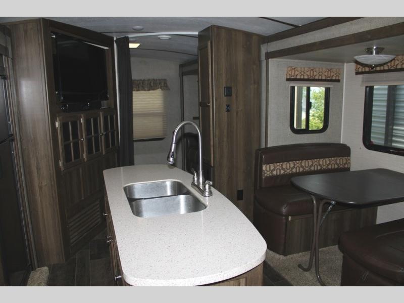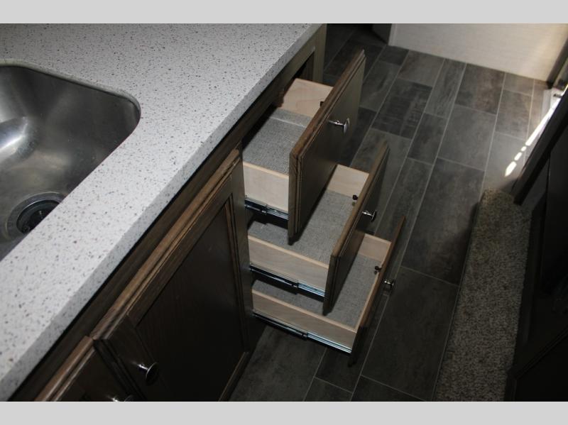 Because of the innovative and modern approach that Keystone has taken with the construction of the Premier travel trailer, you receive a unit that is both functional and comfortable. The residential in-floor heating system gives the stain-resistant Beauflor linoleum flooring a warm and cozy touch, and the 6' 11" vaulted ceilings keep the entire trailer open and inviting to all guests. If you enjoy hosting late-night get togethers with those guests, then the outdoor electric awning with LED lights is a perfect spot for you and your friends to get together as you listen to your favorite music on the exterior speakers.