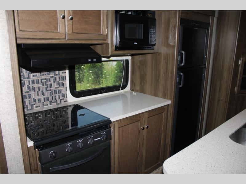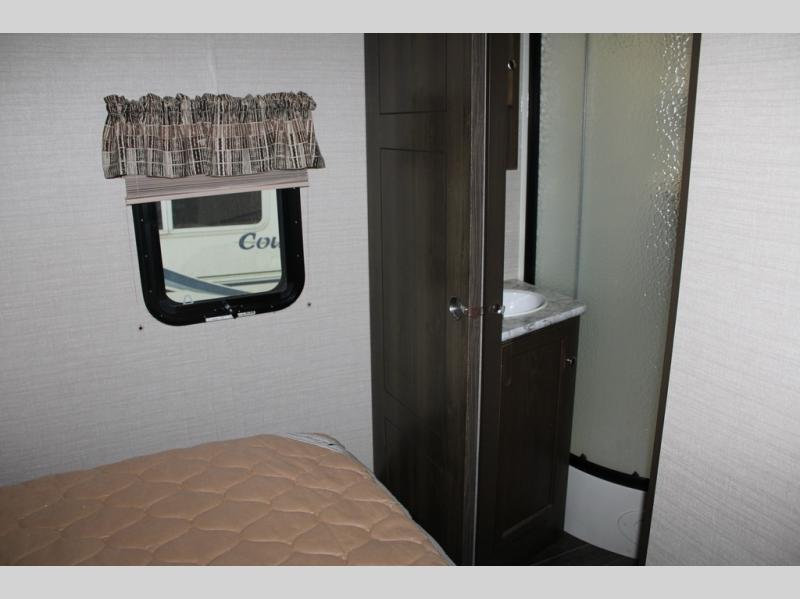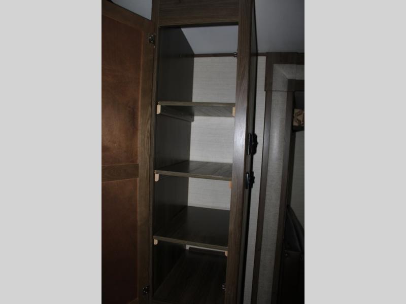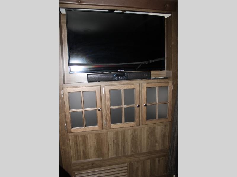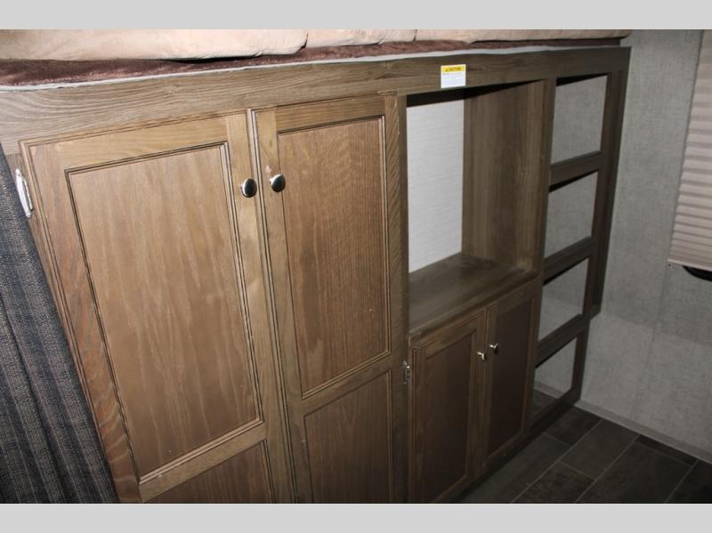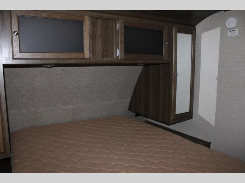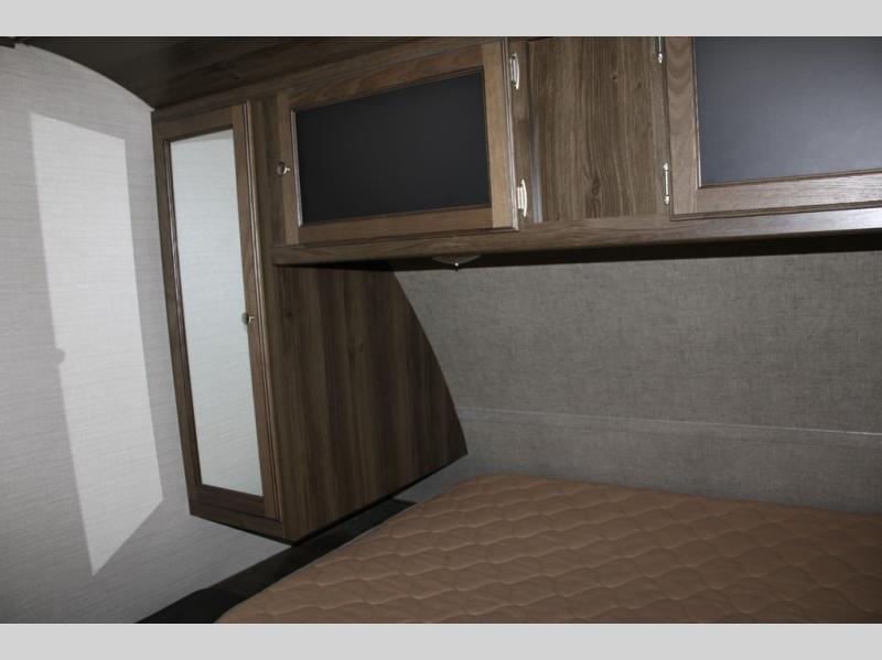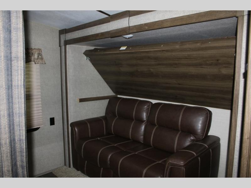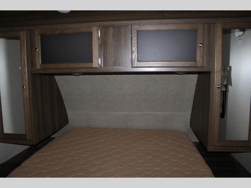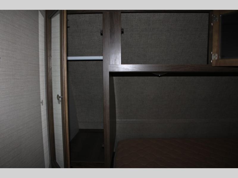 When you travel in this Premier Ultra Lite travel trailer, you will feel as if you are traveling in your very own home. With a private bedroom that has its own bathroom entrance and a semi-private bunkhouse, this trailer gives you the space that you are accustomed to having. This trailer can sleep nine people and store all of the luggage that comes along with those nine people because of the many closets and large exterior pass-through storage. And everyone will love gathering each night in the open-concept living area to watch a movie together on the 32" LED TV.