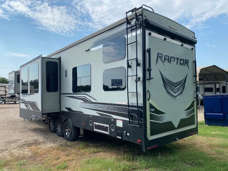 This Raptor toy hauler by Keystone has broken free from the rugged models of years past with its sharp, refined accessories and modern style, and as an industry first, this model includes the largest made-for-RV refrigerator which is a residential-size of 18 cubic feet. This toy hauler is also a part of the only towable manufacturer who incorporates color-coded and numbered electrical wiring in its products, helping you save time and energy when troubleshooting electrical issues. Another best-in-the-industry component that is included with this toy hauler is the 3-year limited structural warranty backed by Keystone RV which will ensure that this unit truly is built for the long haul.