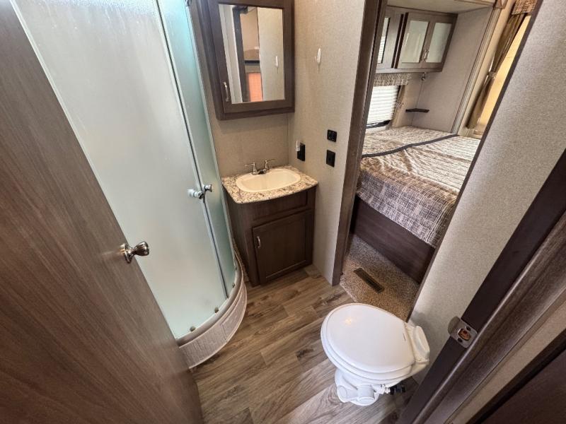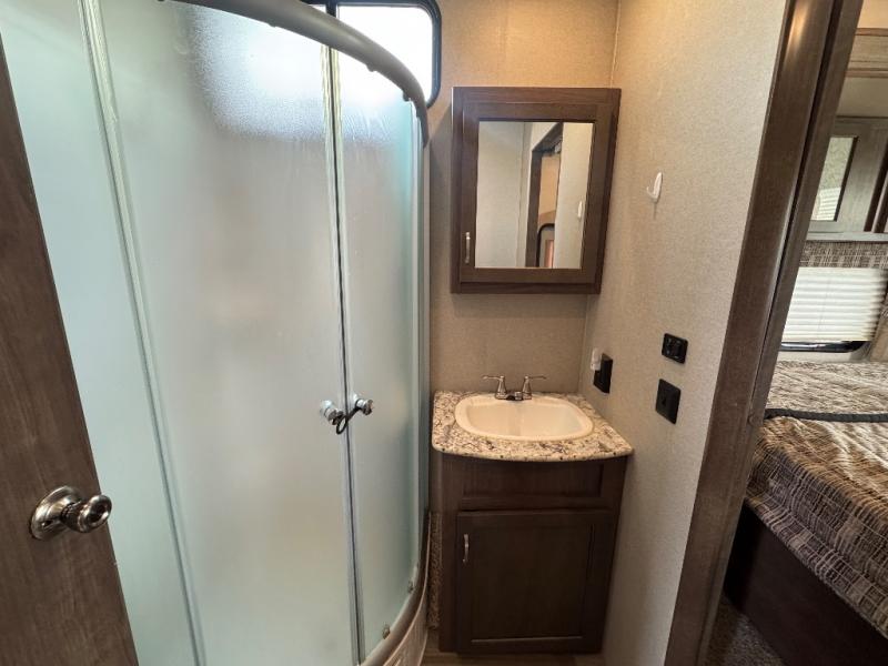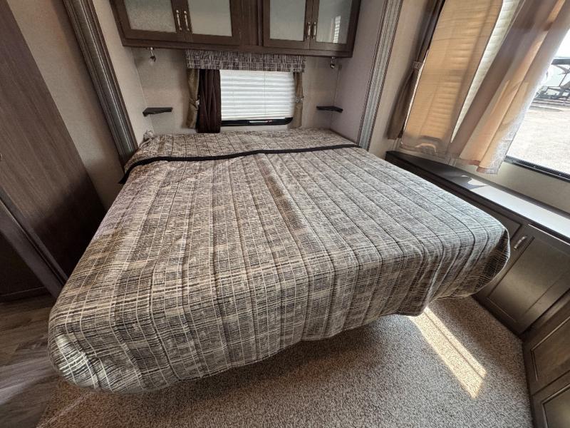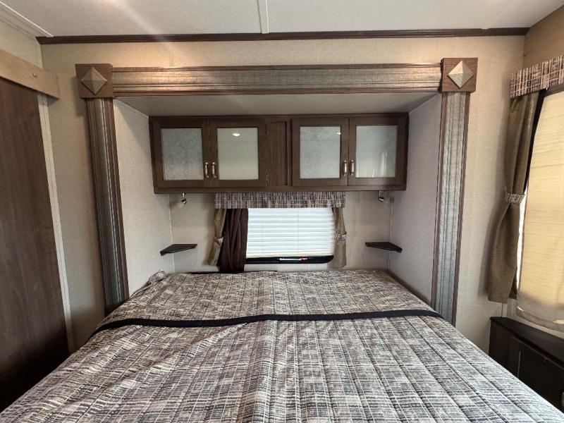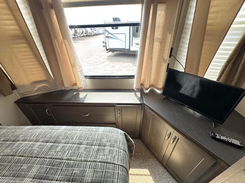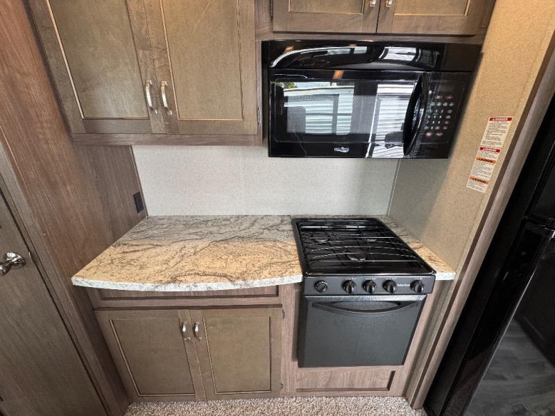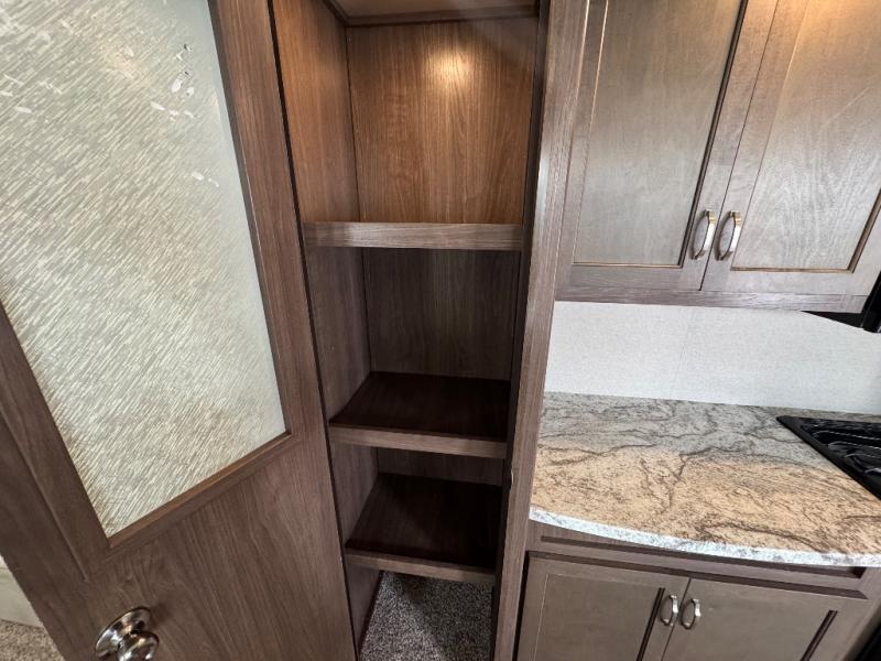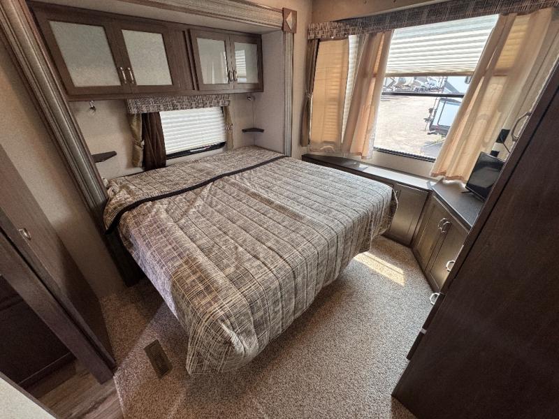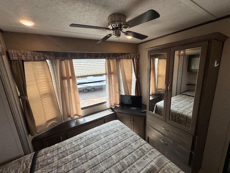 This 391RDEN is the unit you want to take a look at if you are planning on vacationing for a long period of time. This rear living unit gives your guests space of their own if they want to use the sleeper sofas for their sleeping space at night. The private front bedroom has a king bed and plenty of storage options for your things. There is a private entry door into the bathroom for convenience especially at night. The kitchen is nice and big, giving you plenty of space for prepping for meals, cooking them and cleaning up afterward. The residentially sized fridge will give you plenty of room for storing your perishables while you are away from home.
