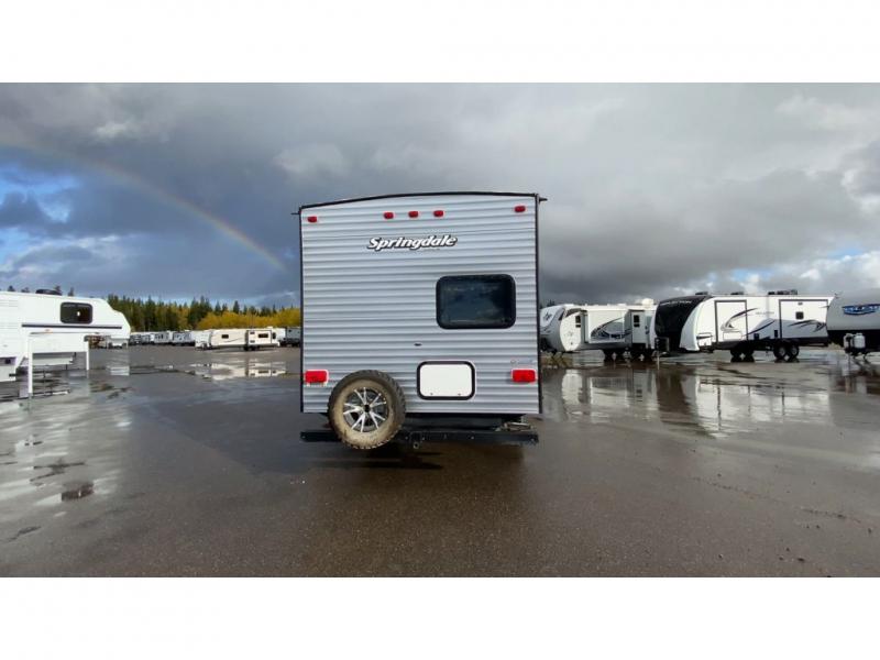 Springdale travel trailers have storage under the master bed for just the right amount of “extra“ storage space, and with the vaulted ceilings, you won’t have to worry about low ceilings being a problem. The powder coated I-Beam frame, Lion's Head Nitro filled tires, and hurricane straps that reinforce the structure are just a few of the standards that you will get when you choose a Springdale model. Choose yours today!