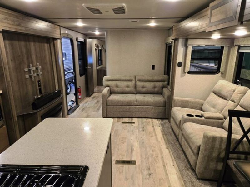 With any Sprinter travel trailer or fifth wheel you can expect "Camping Made Easy!" With the Limited Advantages found on today's models, you will have peace of mind knowing that your unit is quality built and has been triple and quadruple checked before it even leaves the plant. And, once it does, you will still retain a 3-year Industry-Leading limited structural warranty. With the KeyShield paint protection, you can expect your front cap to be looking like new for years to come with up to seven layers of paint protection covering it. You will also appreciate the remote that allows you to easily control your slide rooms, awning, lights, and enjoy push-button leveling! Yes, you heard that right, auto leveling no longer has you crawling around on your hands and knees sliding around boards to level. If all that technology isn't enough, know that your Sprinter is fully prepped for as much technology that you wish. You will find solar prep, backup camera prep, Wi-Fi prep, and so much more! Come make your selection today!