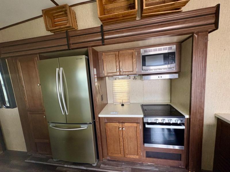 This Keystone Sprinter fifth wheel features a wide body design with quadruple slides which increases the size even more when all slides are fully extended. You are sure to love the den area with the rear entertainment center and fireplace.