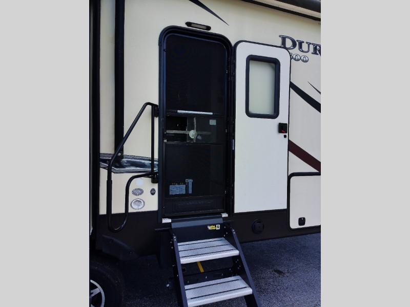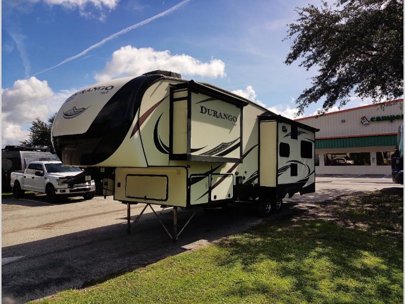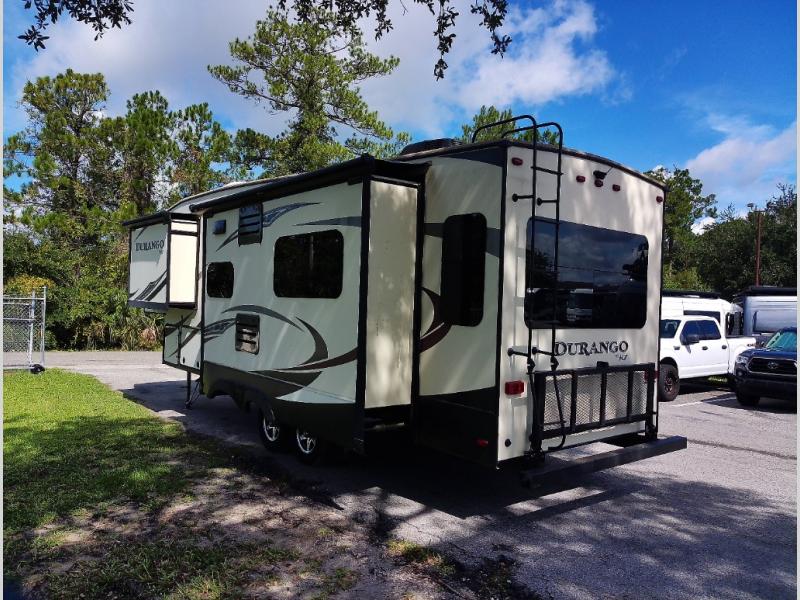 When you travel in this Durango 1500 fifth wheel, nothing is stopping you from having the vacation you've always dreamed of. With the ample storage and sleeping areas, you will have all the room you need to bring along everything and everyone that matters to you. Whether you enjoy spending rainy afternoons lounging on the queen-size bed in the master suite or watching a movie on the HD flat panel TV in the living room, this model will let you do it all.