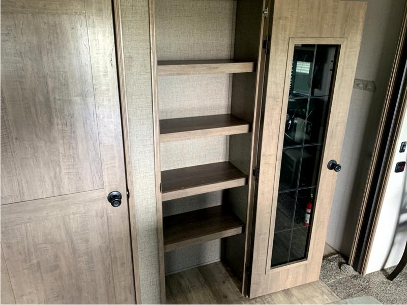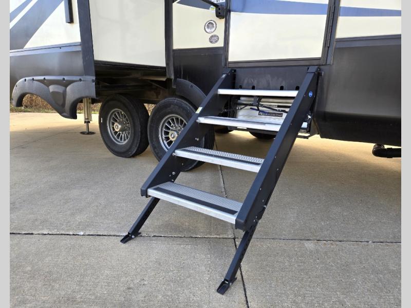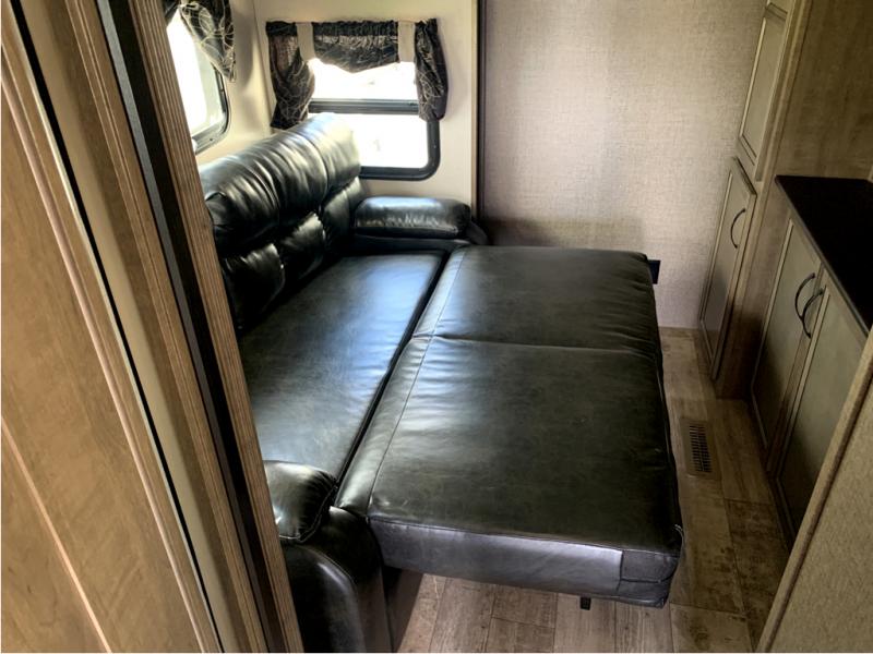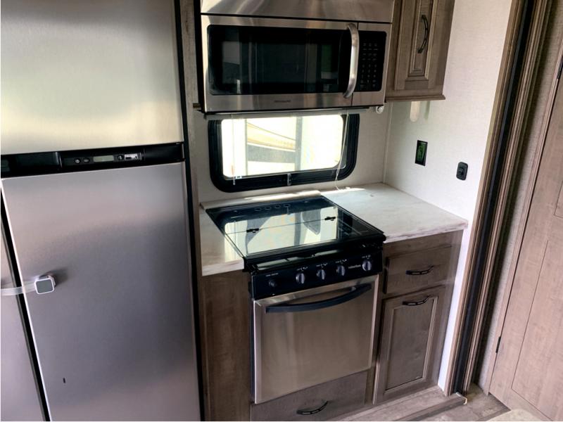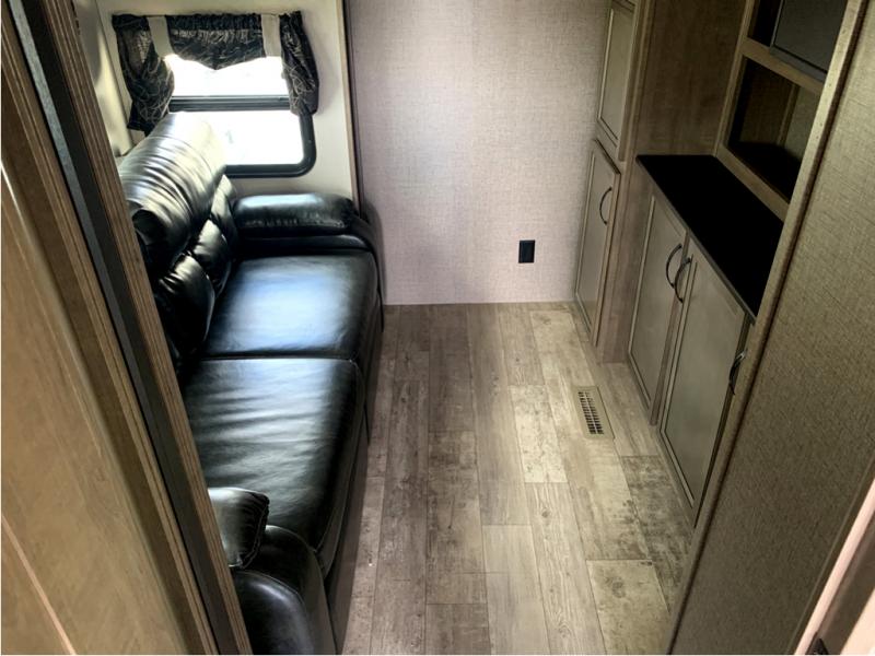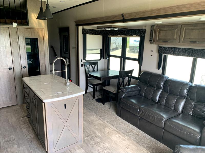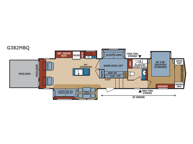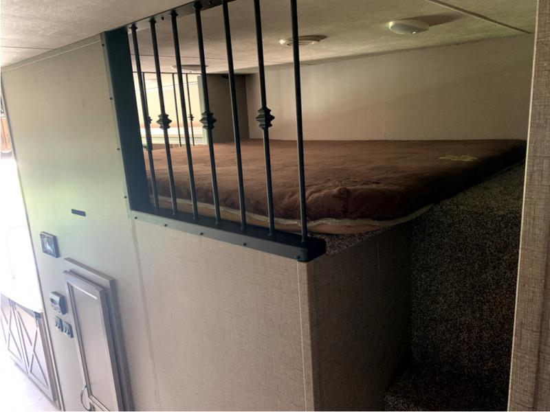 If you are looking for a fifth wheel that is decked out then take a look at this KZ Durango Gold G382MBQ luxury fifth wheel. There are many overhead cabinets inside which provide great storage throughout this model. You will also love the 20' electric awning with LED lights, plus patio deck, just add a few chairs and enjoy the outside without all the dirt at your feet. A queen sized loft is sure to be a pleaser for your kiddos! You can easily store and access your camping necessities inside of the pass-through storage. Meal prep is made easy thanks to the kitchen island that provides you with extra counter and storage space.