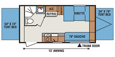 Do you have a medium family that loves camping? If so, this KZ Sportsmen Classic 160RBT is just what you need! This expandable is equipped with two tent beds that provide comfortable sleeping areas. The dinette can also be turned into an extra sleeping area for those unexpected guests. The LED lighting allows you to have clear visibility during the day and night. One of the handy features is the trunk door because you can easily access and store all of your camping needs in here.