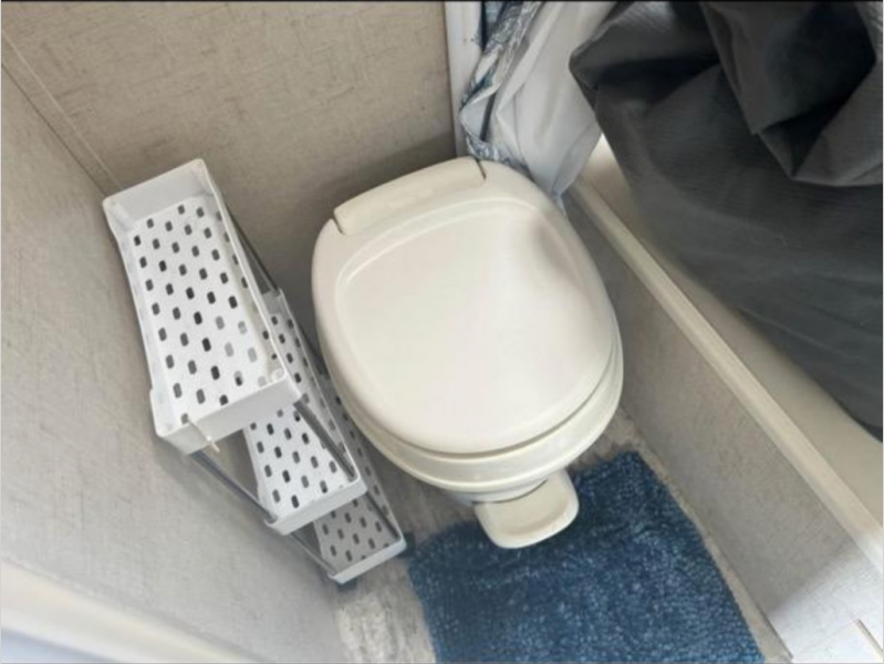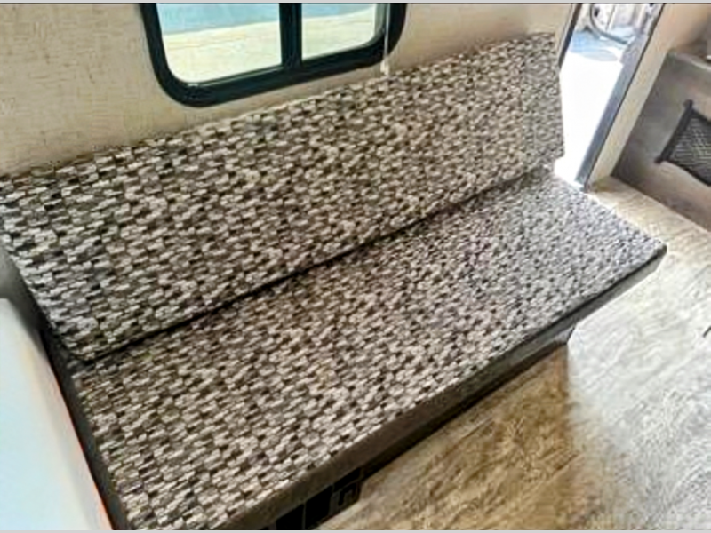The interior features a compact kitchen, full bath (yes, a shower and toilet), and just enough modern comfort to keep the whole crew happy — whether you’re boondocking in the forest or plugged in at a state park.