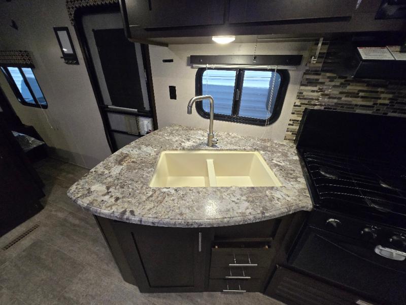 In any KZ Sportsmen LE travel trailer you will find tremendous value in overall quality, and innovative features. A few of these features are seamless countertops, an optional 10 cu. ft. stainless steel refrigerator, cavernous under-bed storage with gas struts for an effortless, easy-lift access, and a multi-media stereo with DVD, Bluetooth, and NFC wireless connectivity. Each unit features Armstrong tough guard linoleum which is backed by a 3-year cold crack warranty. They are constructed with a K-Z exclusive tough shield .030 exterior metal, a one piece seamless roof with SuperFlex roofing material, 3/8" fully walk on roof decking, and a diamond plate rock guard. The key-alike system offers not only the convenience of one lock for all applications, but security as well, which prevents other campers with standard industry keys from opening your storage compartments or entry doors!