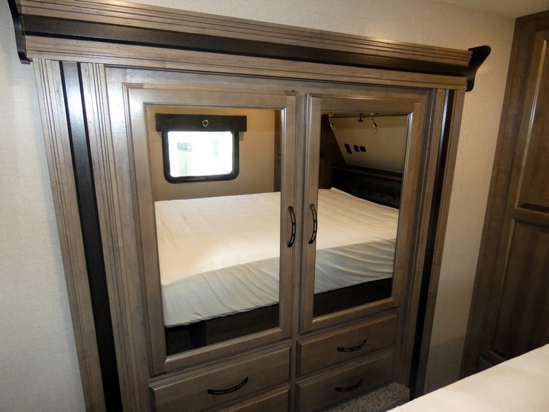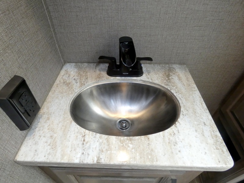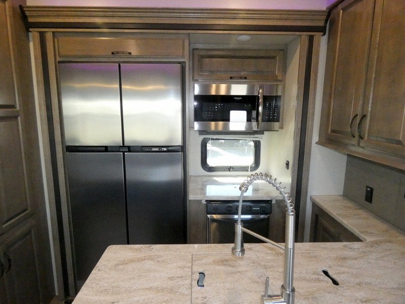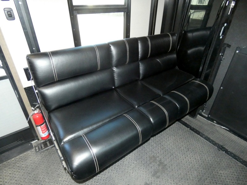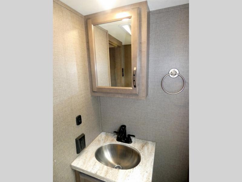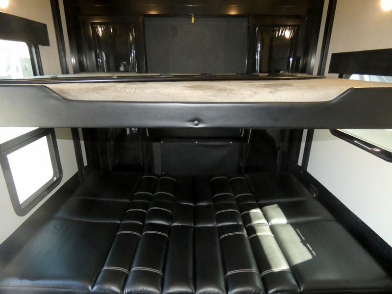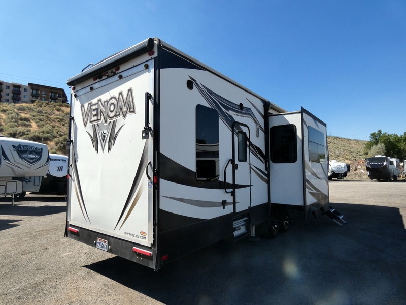 When you choose to camp with a KZ Venom toy hauler fifth wheel you are choosing quality. With exterior features such as an extra reinforced heavy-duty front fiberglass cap, Lamilux 4000 high-gloss fiberglass sidewalls, and an All Weather insulation package you can be assured that this model is built sturdy. Inside each model you will find a 7" monitor MyRV control panel which monitors tank and battery levels, controls slide rooms, leveling system, awnings, plus inside and outside lighting. There is also deluxe residential style furniture as well as a residential entertainment system with radio/Bluetooth/sound bar and Bass subwoofer. In the garage there is a roll-down screen wall, a zero gravity ramp door with easy lift assist, plus an E-Track tie-down system. Come select your Venom lightweight, high-profile, luxury toy hauler fifth wheel today!