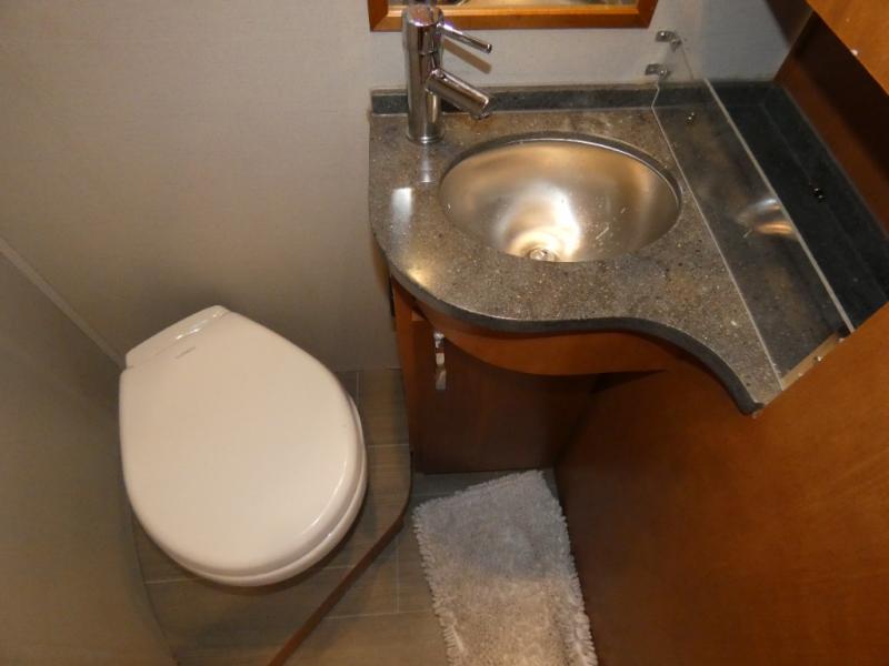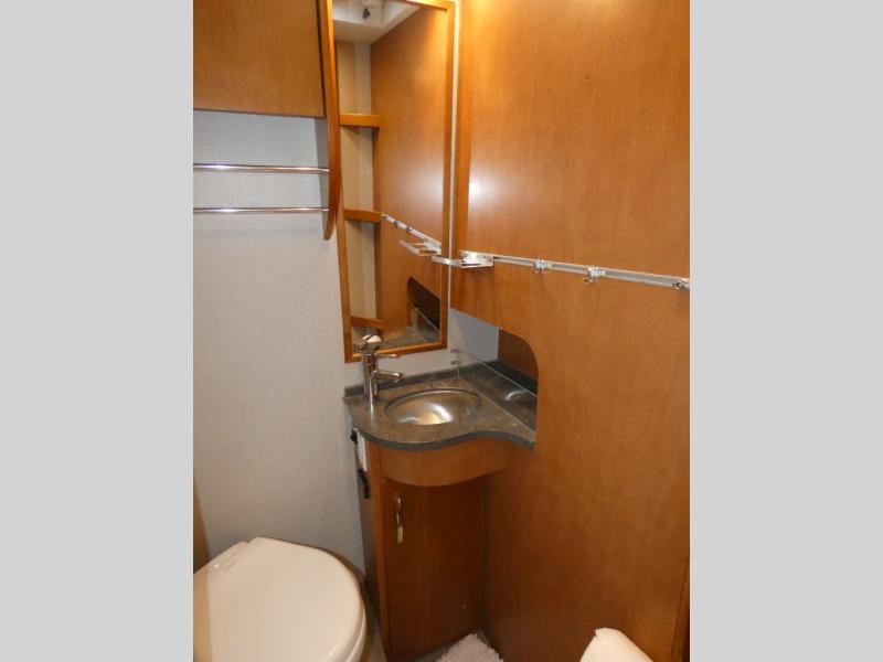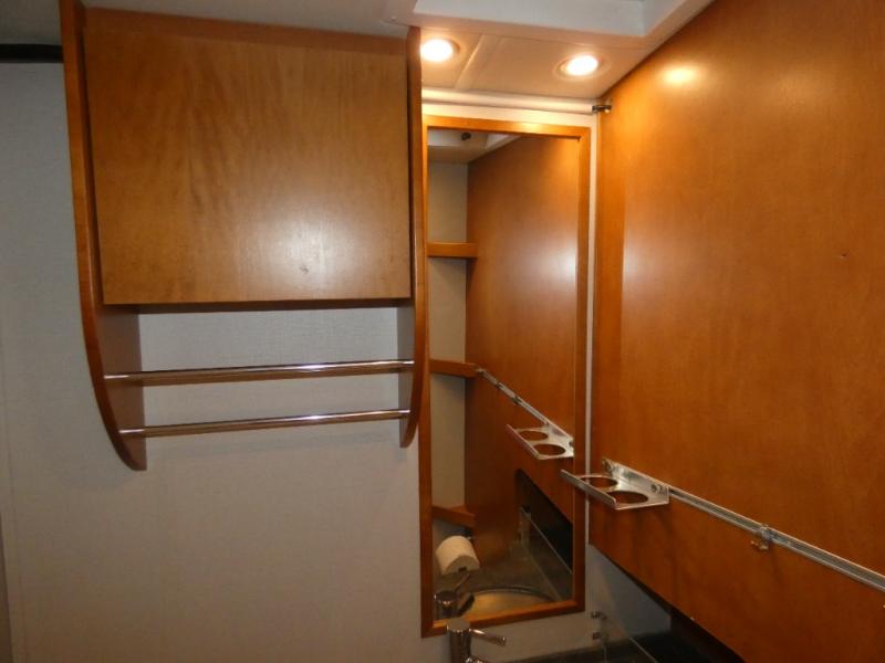 Next, walk through to the rear bedroom where you will find a set of twin beds with a nightstand between. As you head that way notice the shower on your left, and a private sink and toilet with storage on your right side. At the foot of each bed you will also find a storage wardrobe for hanging clothes, plus the overhead cabinets along the rear, curbside, and roadside wall provide more storage for all of your things. Remember, you can also create a spacious king size bed at night if you wish, plus so much more!