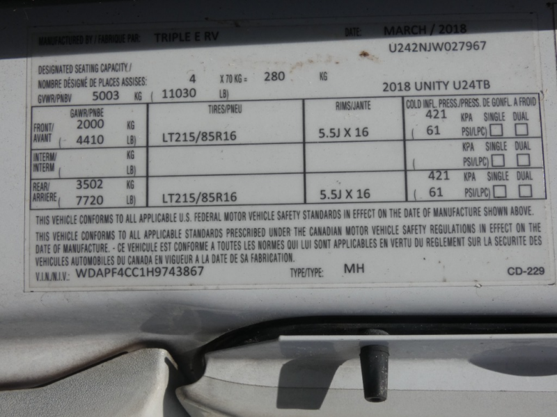 This Unity model 24TB is identical to 24IB except for the bedroom area. This unit offers a set of twin beds that convert to a king size bed in the rear for sleeping instead of a full bed.