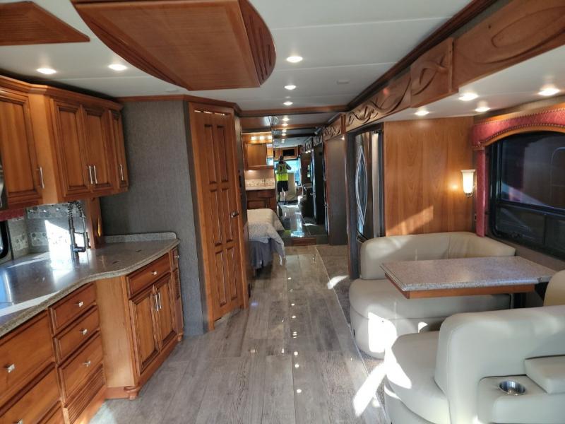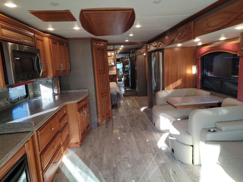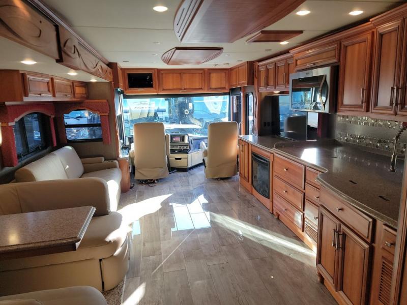 For true comfort and relaxation on any trip whether you are traveling near or far you will want a Newmar Ventana class A diesel motor home. These models are a cut above the rest with frameless double-pane tinted safety glass windows and a skylight above the shower which adds plenty of natural light. You will love the Bermuda glazed Maple cabinets and the polished solid surface counter tops in the kitchen. When you need to get a little work done then simply set up the passenger seat work station. The polished porcelain tile floor in the kitchen, bathroom, and living room is beautiful, easy to clean, and durable! Get ready for any adventure with a Newmar Ventana!