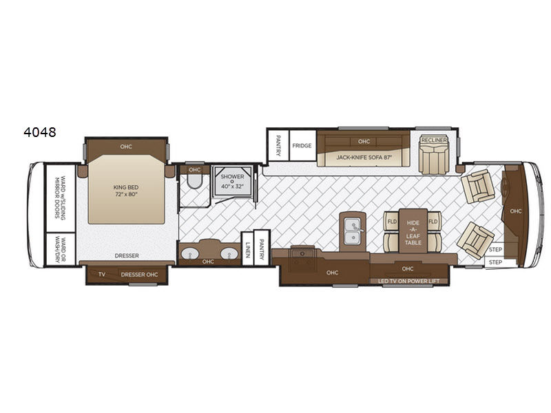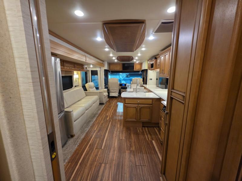 Do you imagine traveling around the countryside in an RV to see new places? Can't decide which one would fit your lifestyle of luxury? This Ventana LE 4048 offers a hide-a-leaf dinette for dining, working, and playing games, plus two LED TVs to watch your favorite shows, and an 87" jack-knife sofa to relax on or sleep at night. You can also find seating on the two captain's chairs and a recliner. The cook will love the style of the kitchen as well as the appliances to make meals. And the master bedroom provides a comfortable oasis with plenty of storage and floor space. Take a step inside, to see if this diesel motor home is right for you!