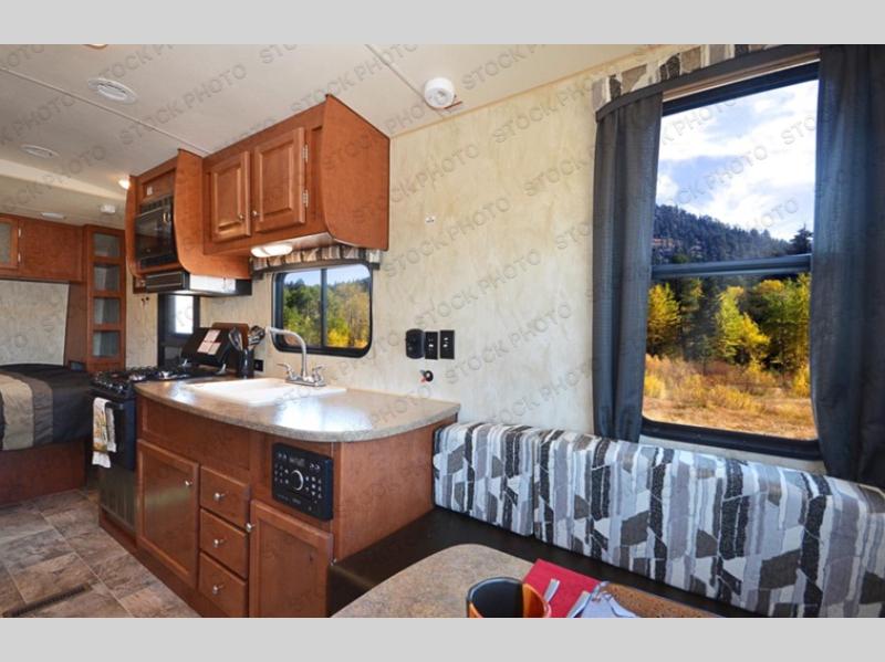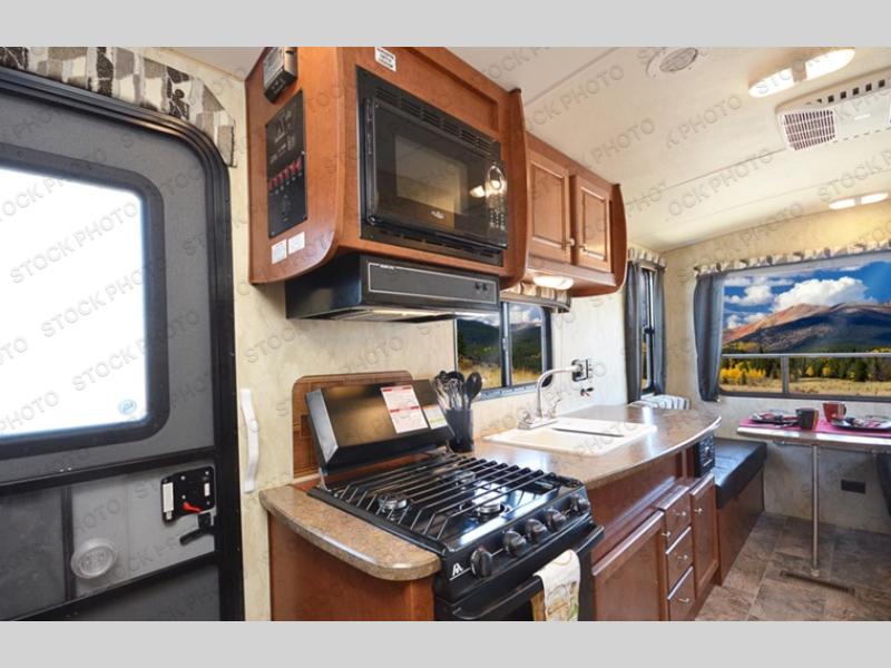 This Northwood Nash 17K travel trailer offers exactly what you need to take your camping up a notch! It features a comfortable 60" x 80" bed for you to enjoy a good night's rest on and overhead cabinets along with additional shelving for extra storage. You can easily whip up your best meals in the full kitchen with the three-burner range, the oven, and even the microwave. Plus your cleanup will be a breeze with the double bowl sink with a sink cover and even a cutting board too. After an adventurous day, you can rinse off at the exterior shower to prevent tracking in any mud throughout the trailer!