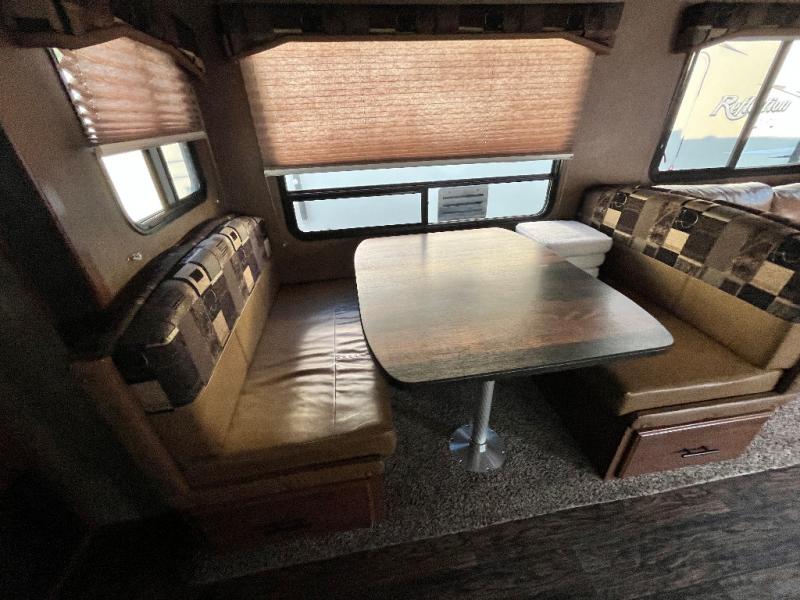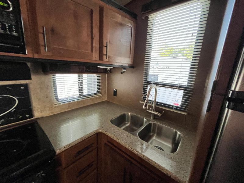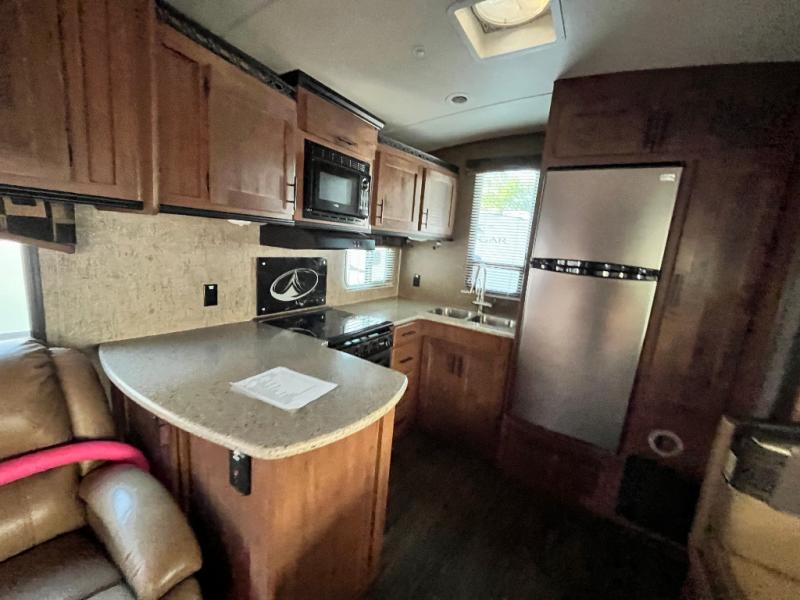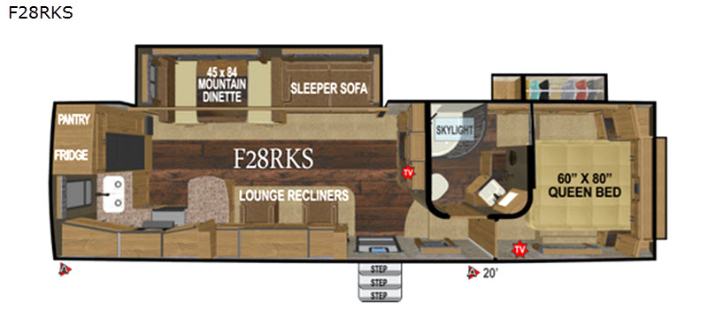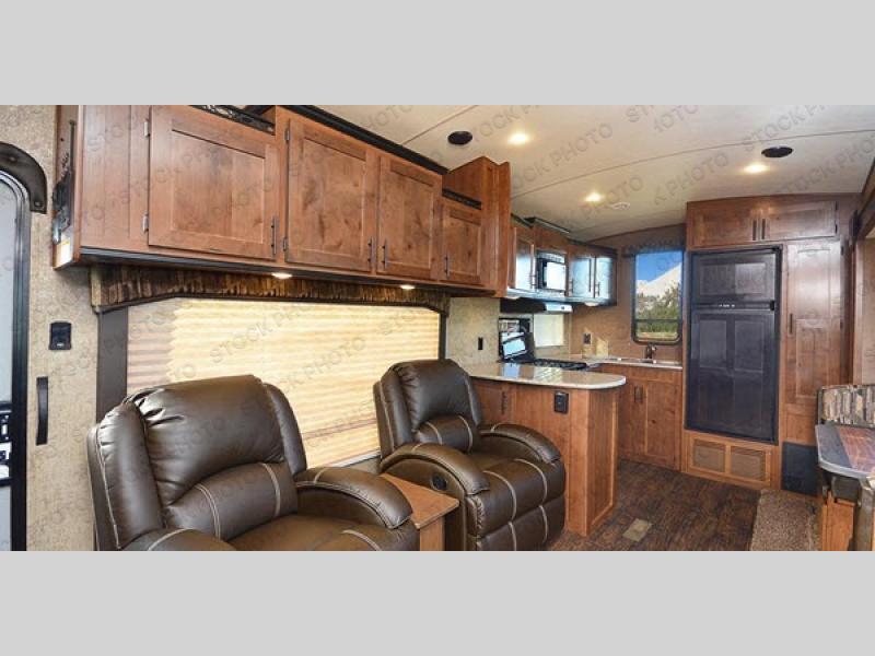 If you are an outdoor enthusiast you will enjoy this Glacier Peak F28RKS mid-profile fifth wheel wherever you land. Imagine relaxing on one of the two lounge recliners while the kids play board games on the dinette. You have sleeping for 4 when needed thanks to the sleeper sofa. You can cook your favorite meals in the rear kitchen while watching the TV or visiting with family and friends. The two slide outs provide extra floor space throughout, and there is plenty of storage as well. You don't have to give up comforts you have at home to explore your adventurous side in this model.