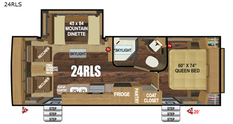 Imagine relaxing on one of the two recliners while the kids are playing board games on the slide out dinette. This Timber Ridge 24RLS will have you appreciating the convenience of dual entry, and much more! After exploring outdoors you can enjoy the comforts of home with the best view of the countryside. You will find other "must have" features such as a free standing magazine rack, coat closet, and flip-up counter in the kitchen. You will also find plenty of storage inside and outside, plus an awning over both entry doors. You know you love playing in the great outdoors but prefer sleeping inside. It's time to start your next adventure today!