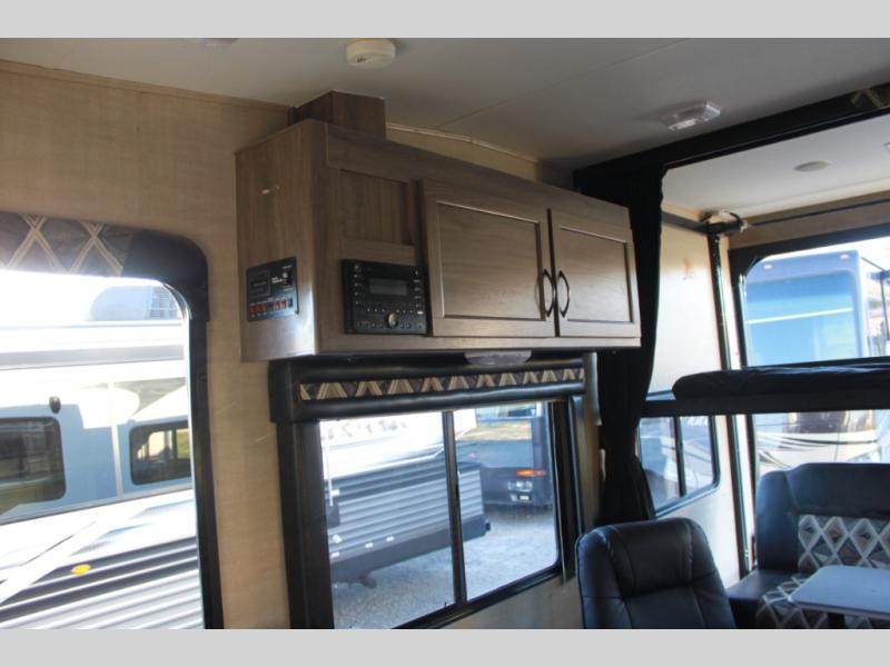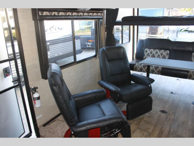 These Sandsport toy hauler travel trailers are built with aluminum frames and front diamond plate rock guards. Inside you have a sound system for your entertainment throughout your trip. There are blackout window covers in the cargo area for keeping this area nice and dark at night when people are trying to sleep. The toy lock security system for keeping your toys safe while you are traveling and after your adventures are done for the day.