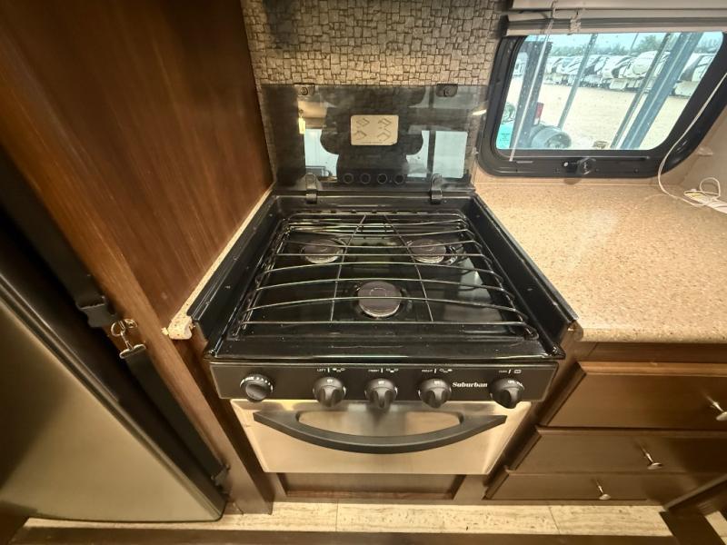 If you enjoy superior amenities that are revamped and up to date, or if you enjoy floorplans that have been designed with your needs in mind, then the SolAire Ultra Lite is the perfect match for you. Because Palomino has included LED lighting throughout the entire unit, the whole atmosphere is kept bright and fresh, and the skylight above the shower lets the sun's rays shine through each morning to illuminate the space even more. The Furrion HDMI stereo with DVD and Bluetooth capabilities allows you to stay connected to the modern world even while you are adventuring in the midst of the forest, and you will find that one of your favorite ways to conclude each day will be to spend it outside of the trailer underneath the electric awning with LED lights to watch as the sun fades away.