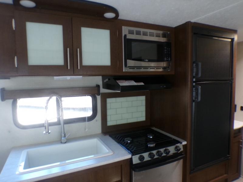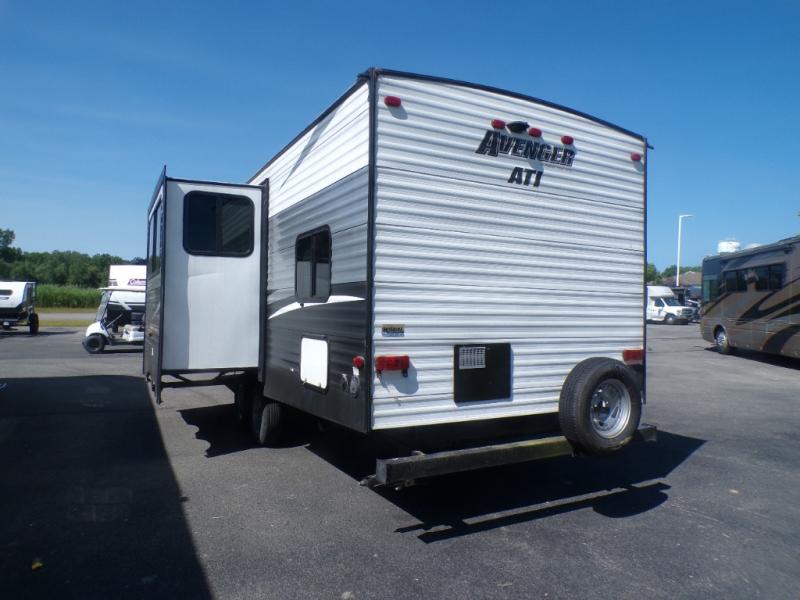 With any Avenger ATI you will feel secure knowing the travel trailer is made with exclusive EVERLAST construction. The Dexter axles provide safety and peace-of-mind while traveling to your favorite locations. Once you are set up you will appreciate the exterior shower providing an extra place to clean off, the radius entrance door with a window, and the LED lit power awning while relaxing outside with family and friends. The mandatory Advantage package provides additional features that you will find useful such as a restaurant style kitchen faucet, LED interior lighting, and a large double door refrigerator. It's time to take your next journey in an Avenger ATI travel trailer by Prime Time RV!