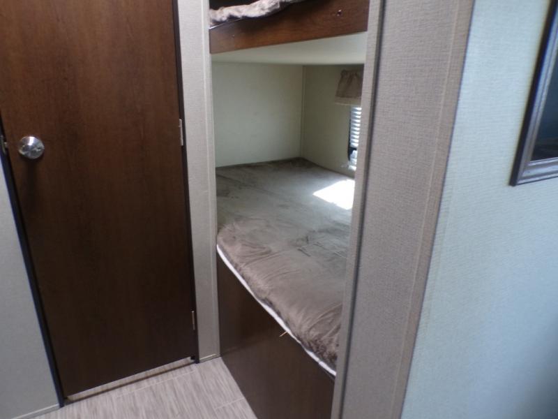 The search is over! This Avenger ATI 26BBS travel trailer by Prime Time RV has sleeping for 7, plus much more! From the sofa and the u-shaped dinette slide to the queen bed up front, and the two large bunk beds in the rear, your sleeping accommodations are taken care of. You will also find all the kitchen amenities to make snacks and meals while away enjoying the great outdoors. There is a private tub/shower with a shower curtain on a curved track and a toilet in the rear with a sink and medicine cabinet just outside the door. This layout allows privacy for the person taking a shower, while another is washing their hands. Take a look today!