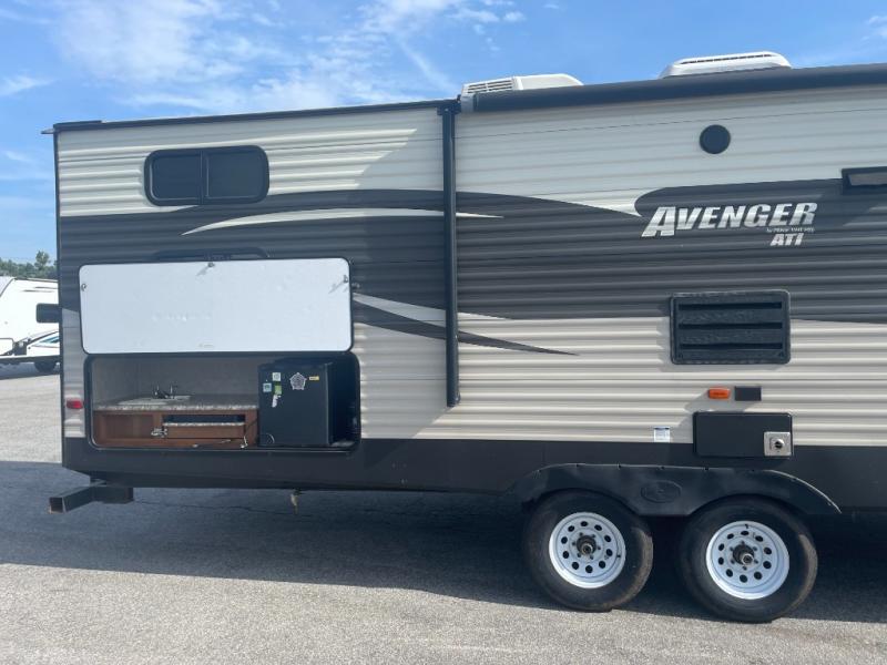 With any Avenger ATI you will feel secure knowing the travel trailer is made with exclusive EVERLAST construction. The Dexter axles provide safety and peace-of-mind while traveling to your favorite locations. Once you are set up you will appreciate the exterior shower providing an extra place to clean off, the radius entrance door with a window, and the LED lit power awning while relaxing outside with family and friends. The mandatory Advantage package provides additional features that you will find useful such as a restaurant style kitchen faucet, LED interior lighting, and a large double door refrigerator. It's time to take your next journey in an Avenger ATI travel trailer by Prime Time RV!