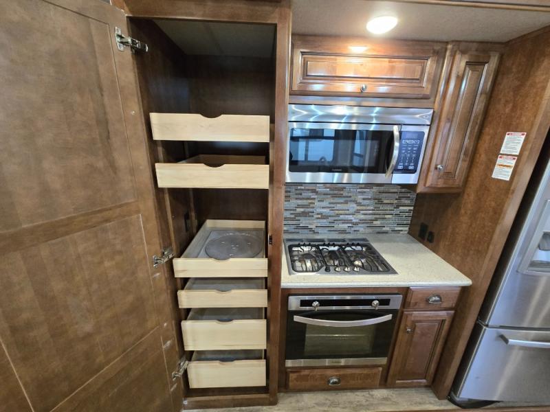 All Redwood fifth wheels are filled from top to bottom with luxury. When you choose the Full-Time Living Package you can easily make a Redwood fifth wheel your home. With this package you will find a FIT 2.0 chassis, MORryde LRE 4100 suspension, a large high rise island with pullout cutting board, a full pantry with sliding drawer, and more! You will appreciate the ease of the iNCommand smart automation system that lets you control your unit and all automated features easily from any device you own. And, each Redwood is filled with plenty of residential features because home is generally where you would find this much luxury. Enjoy each complete kitchen including residential appliances and storage spaces, plus solid surface counter tops and sinks. The Redwood Parks Package includes high gloss Cherry cabinet doors, a 39" LED HDTV in the bedroom, USB ports throughout the unit, plus so much more! Make the choice today to own a Redwood FW and take a bit of home with you the next time you travel!