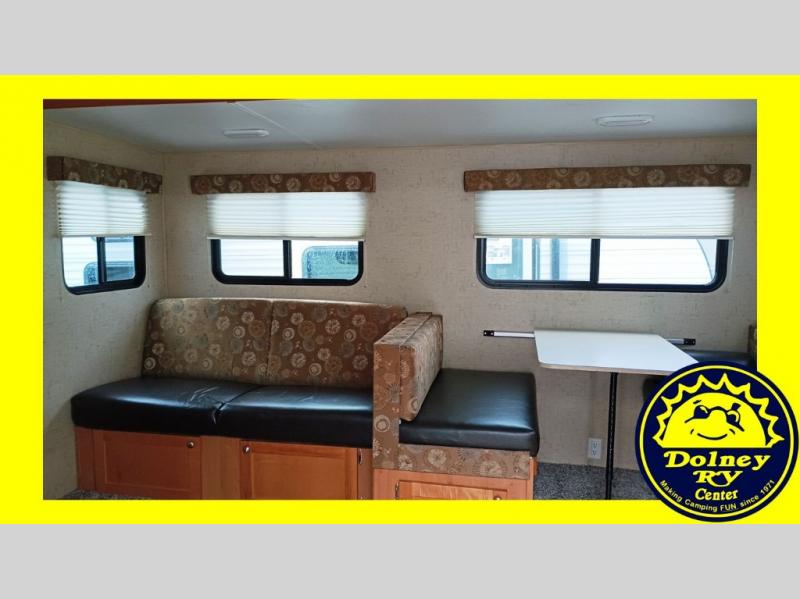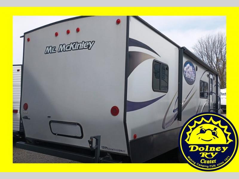This Mt. McKinley is all about providing a spacious retreat for you and your family to enjoy at every opportunity! The combined sofa/booth dinette slide out offers a larger foot print for moving about inside, plus there is plenty of seating for meals and just hanging out. The front kitchen layout makes it easy to cook inside, as well as finding ample storage for dishes and camp necessities. You will love the private bedroom up front beyond the spacious walk-through bath. This is great for a bit of privacy at night from anyone sleeping on the fold out sofa and booth dinette which can also be turned into a bed!