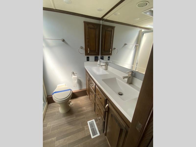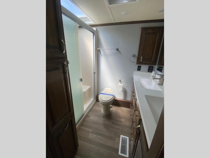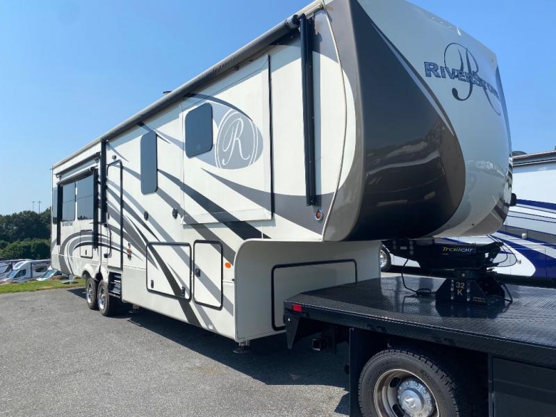 Get ready to camp in luxury when you choose a RiverStone fifth wheel! These models feature residential style insulation as well as roof and flooring touts with an R-38 insulation value which is designed for full time living throughout the country! Inside each model there is a 60" LED Smart TV as well as plenty of residential touches from the Shaw vinyl flooring to the large stainless steel kitchen sinks. There is beautiful upgraded Corian solid surface counter tops in the kitchen and a central vacuum system which makes cleaning up so much easier. The mandatory RiverStone Luxury Package has features such as a Splendid "Astral" stackable washer and dryer, a large infiniti light over the kitchen island, plus a Fischer Paykal dishwasher. Come see for yourself why the RiverStone is desired by many for the luxury and convenience it offers.