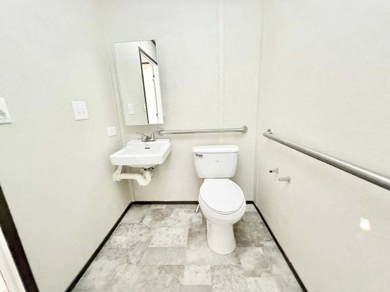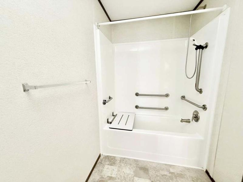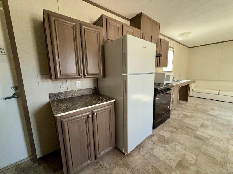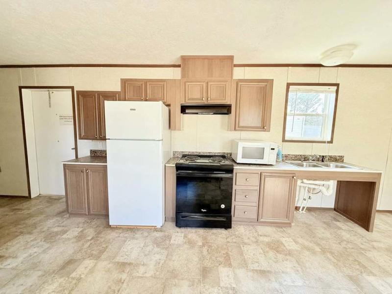 2 Bedroom,1 Bath 14x50 Vinyl siding and shingled roof Wall mounted central heat and air High Efficiency Built in fire sprinkler system Comes with residential refrigerator, stove, microwave and hot water heater included 1 bedroom in the front and 1 in the rear with closets and dressers Bathroom in rear. Very spacious W/D hook up right across from bathroom Sold by a licensed mobile home dealer Delivery Available by a licensed mobile home transporter(not included in price)