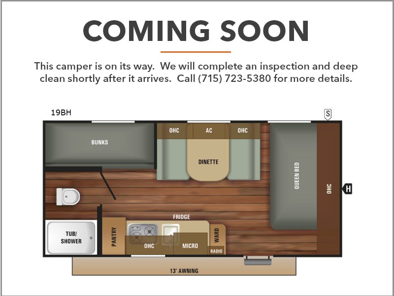 How would you like a travel trailer that can accommodate your family of six? You will want to check out this 19BH Autumn Ridge Outfitter. Sleeping space can be found at the front queen bed, the rear bunk beds, and the dinette. The fully functional kitchen features a pantry for your canned goods, a two burner range where you can prepare your meals, and a single sink which makes cleaning up a breeze!