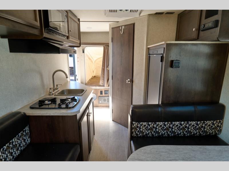 Fully Equipped Kitchen: Includes a 2-burner range, microwave, sink, and mid-size refrigerator so you can prepare meals wherever your travels take you.