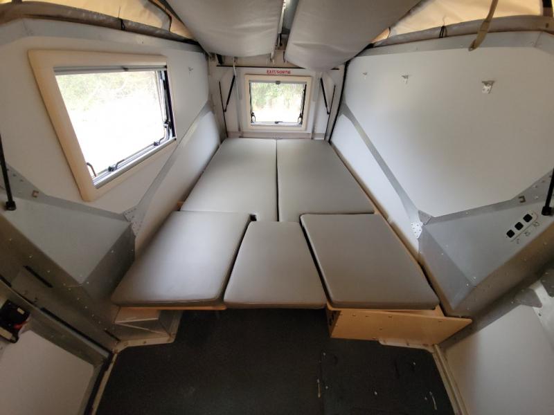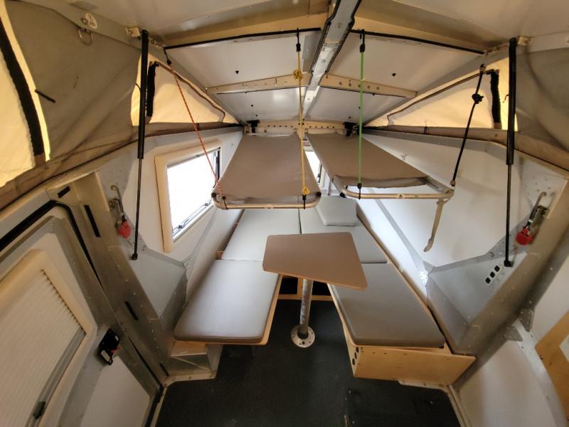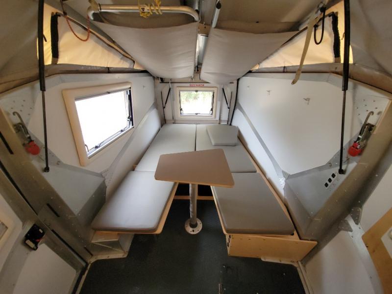With any Cricket you may enjoy 3 plus days off the grid with your 4-cylinder vehicle, 120V inlet for shore power connection, and a tow vehicle connection that recharges the battery while moving down the road. From the powder-coated galvanized steel frame, Kynar-painted and UV treated aluminum panels to the all-terrain tires and torsion axle suspension you can travel where ever your heart desires. You will appreciate the NASA inspired design and integrated plumbing and electrical systems as well. Come see why they call this the Ultimate Adventure camper trailer!