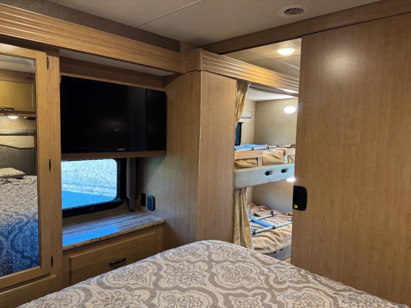 This Thor Motor Coach A.C.E. class A motorhome model 30.2 features a full wall slide out for added interior space, a set of bunk beds, dual entry into the bath, and all that you need to enjoy traveling the countryside!