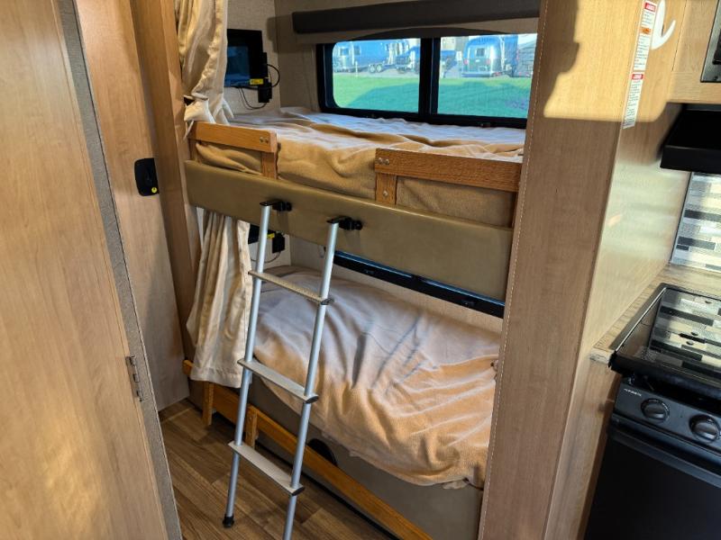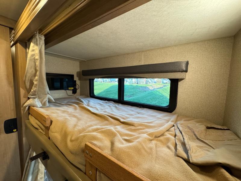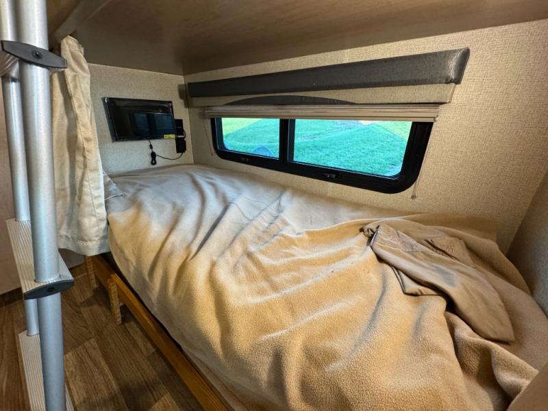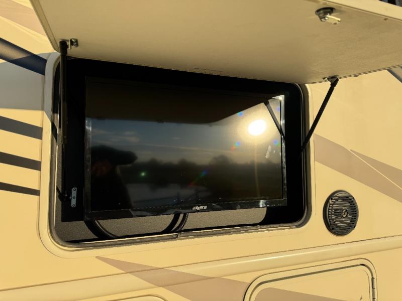 Back up front you will find a drop-down overhead bunk for added sleeping space when needed, plus so much more! And outside there is a 32" LED TV for watching your favorite shows and movies.