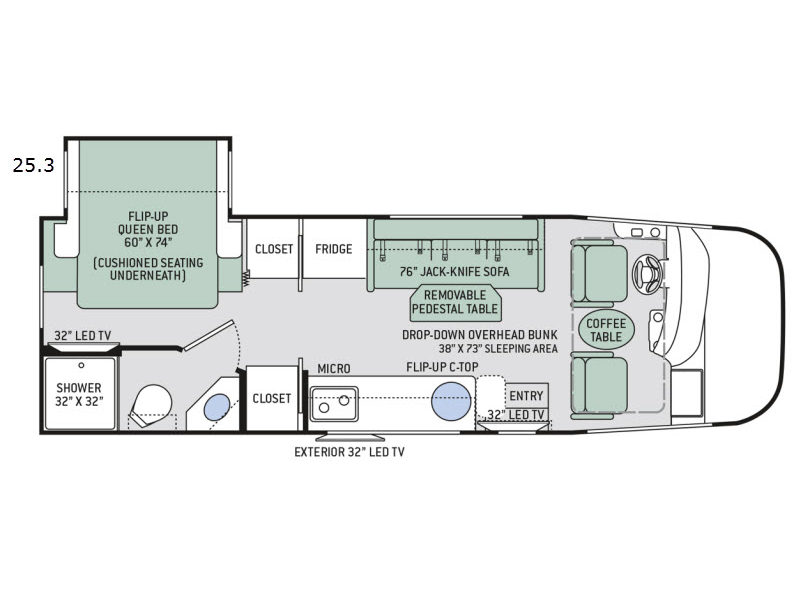 | TV Info | LR 32" LED, BR 32" LED, Ext. 32" LED |