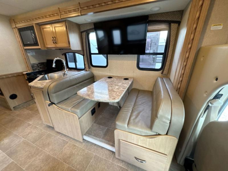 Enjoy each adventure in this Thor Motor Coach class C gas home on wheels. This Chateau 28Z offers added comfort including a large slide out in the living area, and rear bedroom featuring a queen size bed with a Denver Mattress. Within the slide out there is a 71" Dream Dinette where you can enjoy your meals or a card game or two, and at night this area easily converts into additional sleeping space, if needed. In the cab there is a touchscreen dash radio and a convenient back-up monitor. This model also features a pop-up counter top outlet and a charging center for your electronics, plus so much more!