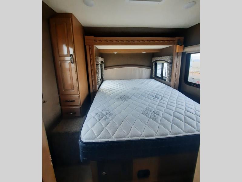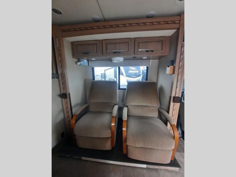 Each Chateau Sprinter is built on a Mercedes-Benz Sprinter chassis. Along the exterior there are black framed windows, a power awning with integrated LED lights plus slide out room topper awning(s), a one-piece fiberglass front cap with exterior courtesy lights over cab doors, and an HD-MAX exterior with graphics package. Inside each model there is plenty of space plus you will find a residential vinyl floor, laminate counter tops, plus swivel leatherette driver and passenger captain's chairs. The Onan RV QG 3600 LP generator plus the instant tankless water heater make it easy to camp in any kind of outdoor conditions and more. What are you waiting for? Come select a class C diesel Chateau Sprinter today!