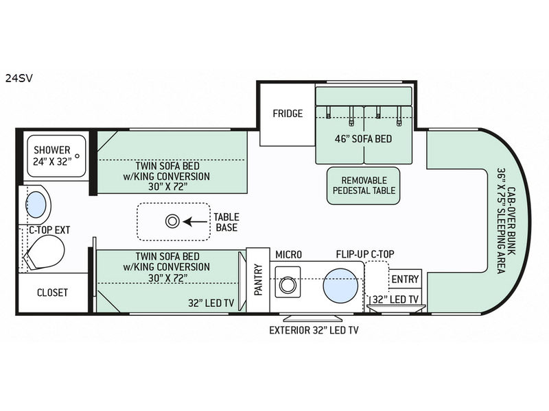 Start traveling the countryside in style and comfort in this Thor Motor Coach Citation Sprinter 24SV Class C diesel motor home. This model features a single slide out, plus twin sofa beds which can easily convert into a king size bed.