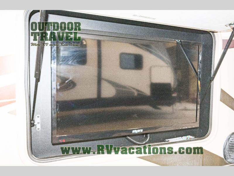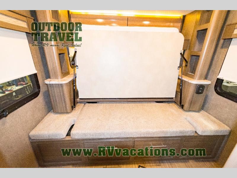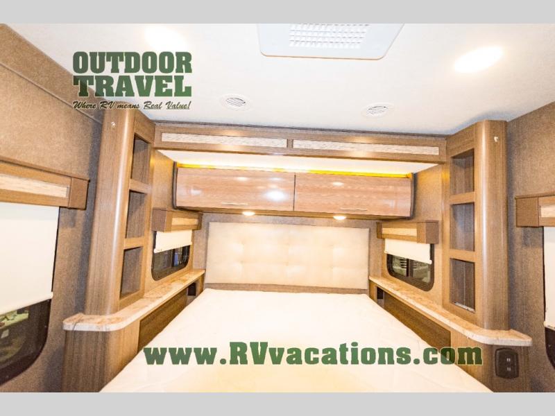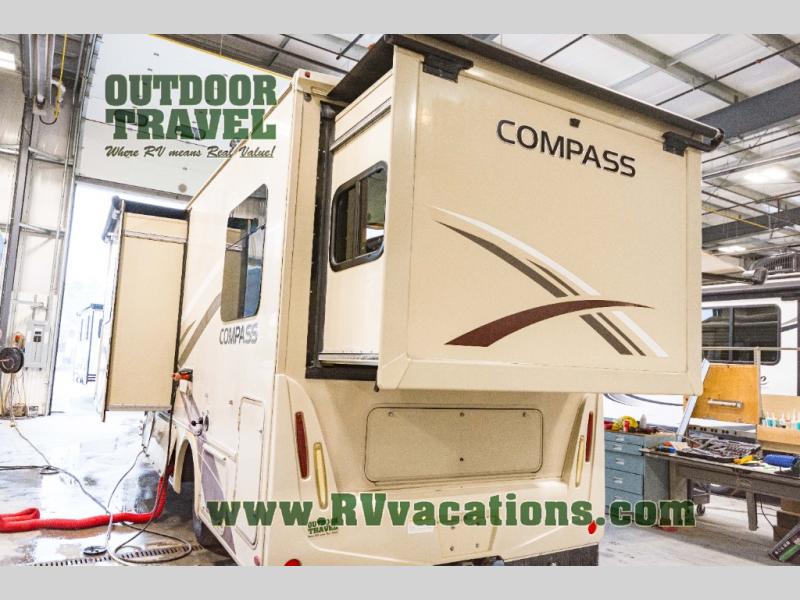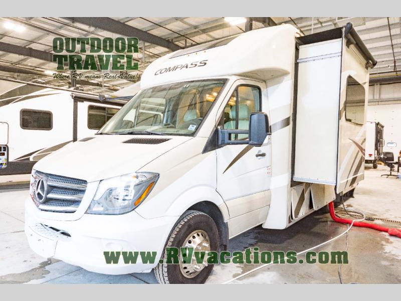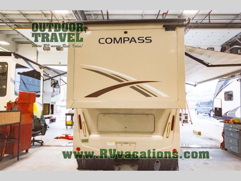 Get ready to set out to new destinations in a Compass class C diesel motor home. Along the exterior there is a Vacu-Bond laminated roof, walls, & floors with block foam insulation. Your extra camping gear can be stored in the Rotocast storage compartments, plus there is a power patio awning with integrated LED lights which allows you to sit outside just a bit longer. Inside each model there is residential vinyl flooring, Euro-style cabinet doors, plus window privacy roller shades. There are two exterior colors to choose from as well as two interior colors. What are you waiting for? The road is calling your name, why don't you answer the call with a Compass class C diesel motor home!